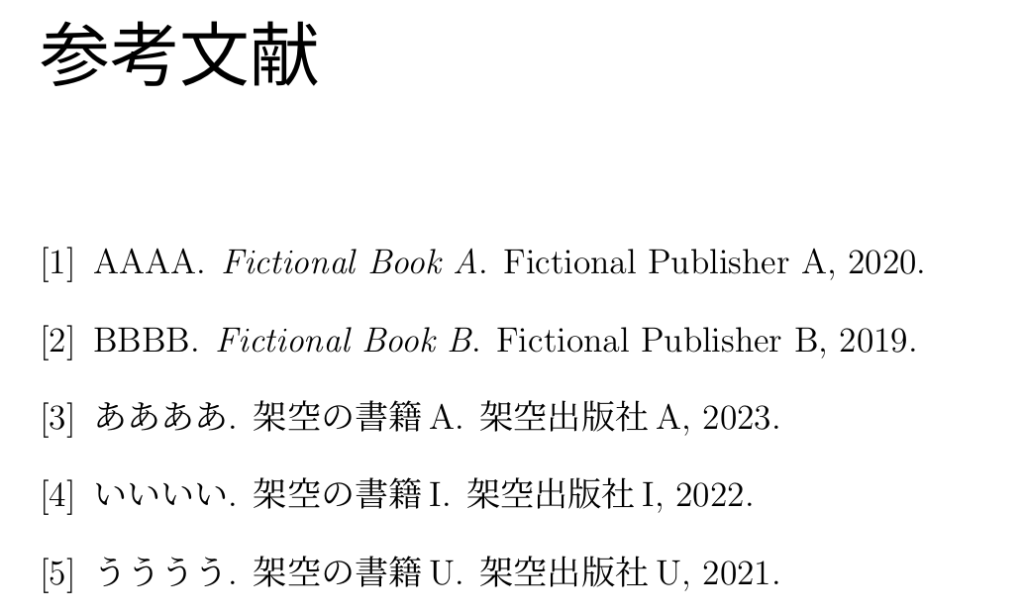 確かに,実際の引用順によらず著者名順にソートされていることが分かります.